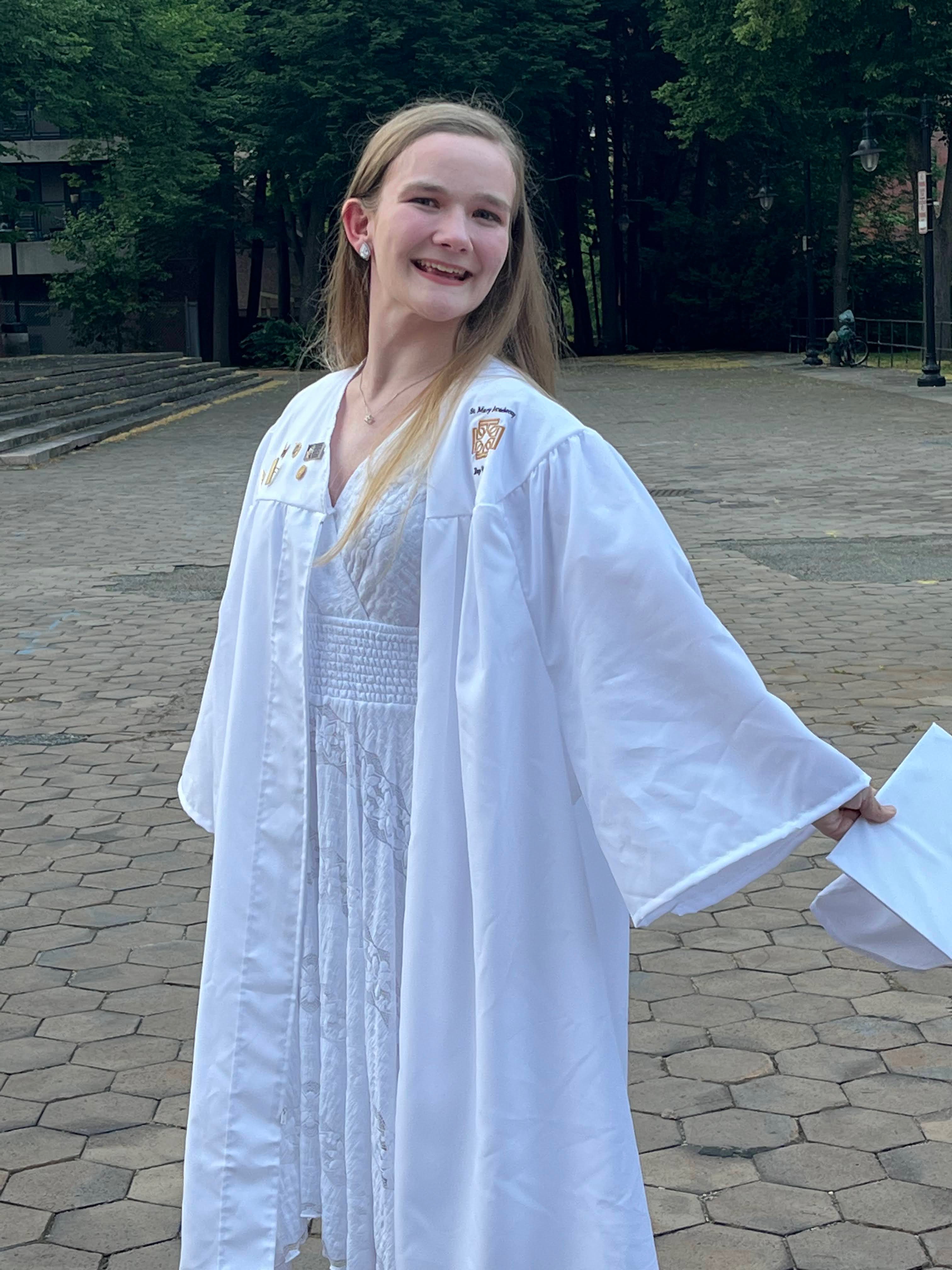 Rachel went on to attend St Mary's Academy Bayview, an all-girls private high school. Here, her love for dance, music, theater, and even cheerleading grew. The all-girls environment allowed for Rachel's confidence to grow exponentially and instilled in her values such as helping others, the importance of female friendships, and resilience.